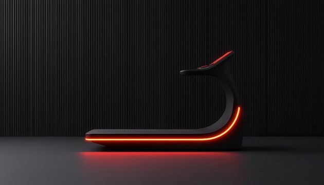 digital fitness virtual innovation. A futuristic treadmill integrating VR landscapes for engaging virtual runs, adapting difficulty based on user performance, fitness innovation, immersive technology