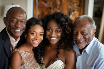Family reunion Zoom call, heartwarming smiles, vibrant cultural clothing, harmonious family bond
