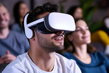Family reunion in a virtual reality setting, with members connecting through digital avatars