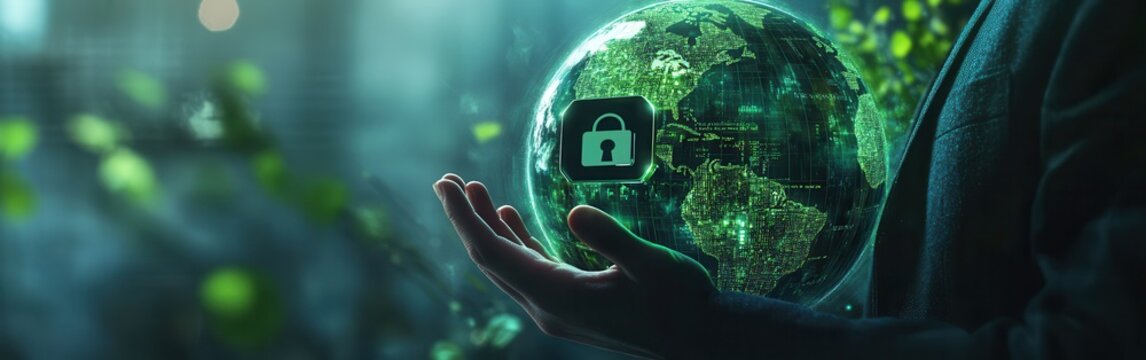 Holographic globe network connecting data streams on dark tech grid for cybersecurity