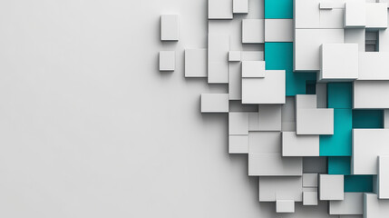 Abstract geometric arrangement of white blocks with blue lighting creating a modern digital appearance in a computer-generated setting
