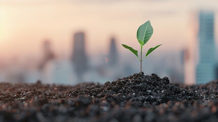 Young green shoots growing in urban setting viewed through concrete opening