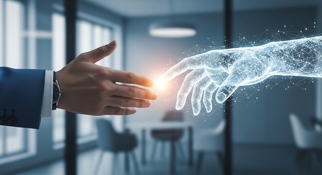 Robot hand interacting with advanced digital interface