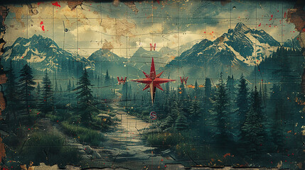 Retro Style Scavenger Hunt Poster with Mountain Landscape