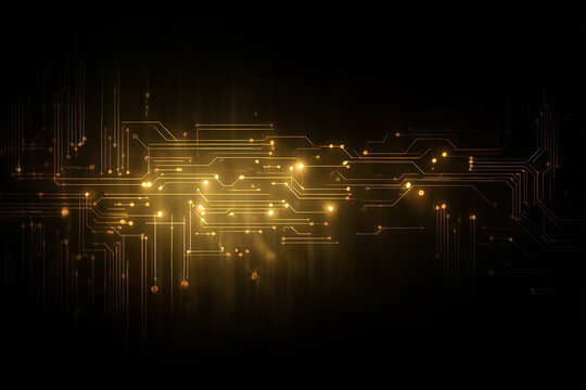Futuristic glowing circuit lines in virtual hud interface
