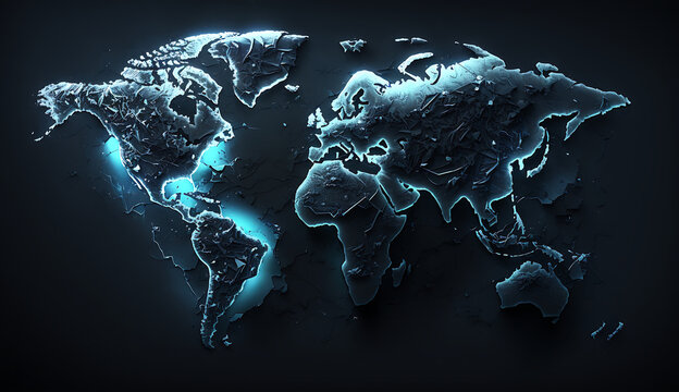 Technological World Map: Image Where a Map of the Whole World is Represented in a Technological Style