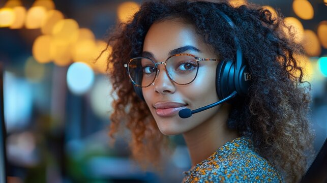 Businesswoman engaged in virtual meeting with data analyzing visuals