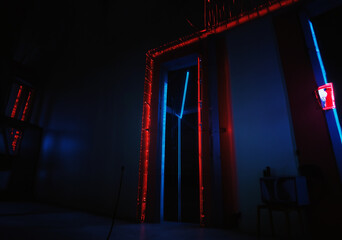 Futuristic Digital Collaboration Interface Diverse Team in Neon-Infused Virtual Workspace - Enhancing Remote Workflows for Tech-Savvy Professionals in Business Innovation