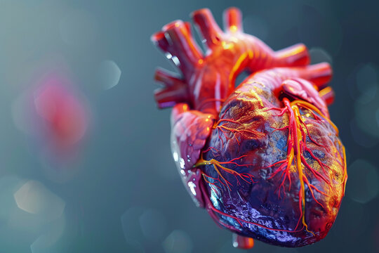 3D graphics showcasing heart anatomy, perfect for virtual medical models in cardiology and health education programs.