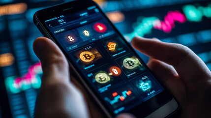 Online communication through a mobile phone with interactive social networking apps. Social media engagement showing likes, messages, and notifications on a digital screen.