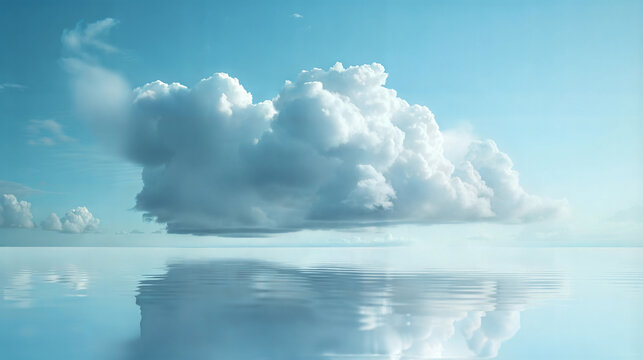 Hybrid cloud architecture blending public and private systems in tranquil water setting