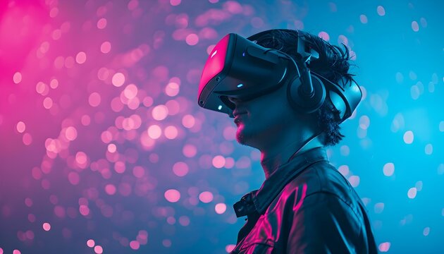 Man experiencing virtual reality with futuristic interface