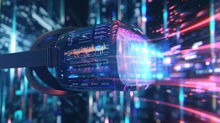 Futuristic Virtual Reality Headset with Real-Time Data Visualizations - Enhancing Data Analysis Experience