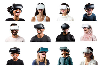 PNG people wear vr headset element set, transparent background