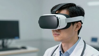 Medical professional analyzing virtual reality healthcare data