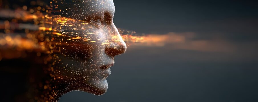 Digital transformation and artificial intelligence concept with abstract human head profile