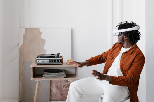 An energetic reaction to a VR simulation, capturing the joy and surprise of entering a virtual world.