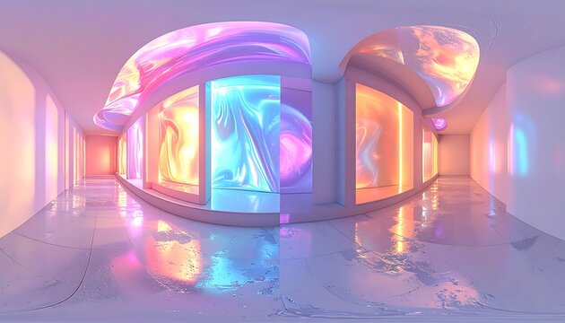 3d technology abstract neon light background, empty space scene, spotlight, dark night, virtual reality, cyber futuristic sci-fi background, street floor studio for mock up. colored geometric.