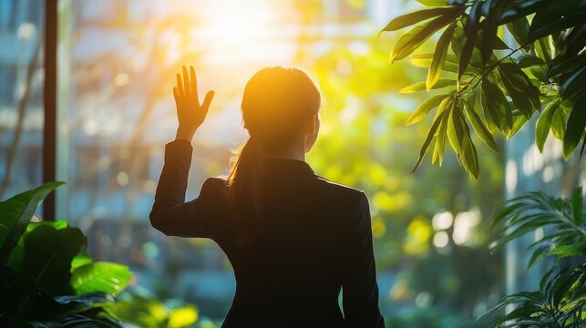 Hand reaching virtual strategy interface with digital network