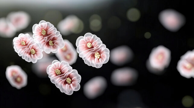 Floating virus cells with dynamic numbers on dark background