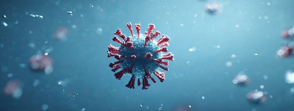 Virus in motion against a light-blue backdrop