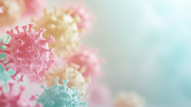 array of colorful virus models on sterile table intricate details in sharp focus soft ambient light creating contrast