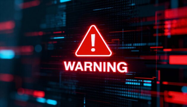 Red alert warning on black digital interface background