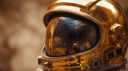 Close up of astronaut helmet reflecting cosmic vastness, visor, reflection, universe