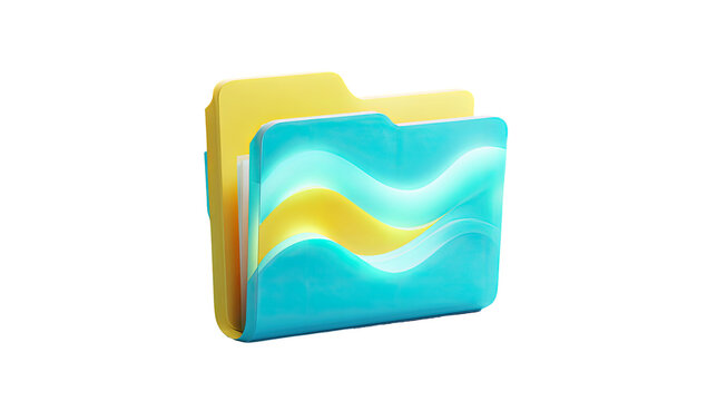A 3D rendered folder icon, light teal blue with yellow accents.  It has a wavy teal interior