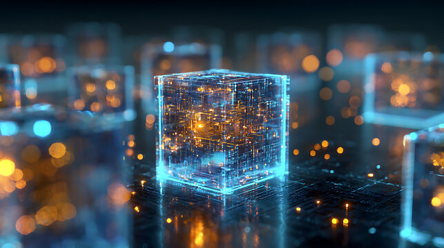 Stunning 3D rendered data cubes glowing with futuristic energy, a visual metaphor for innovation and cutting-edge technology solutions