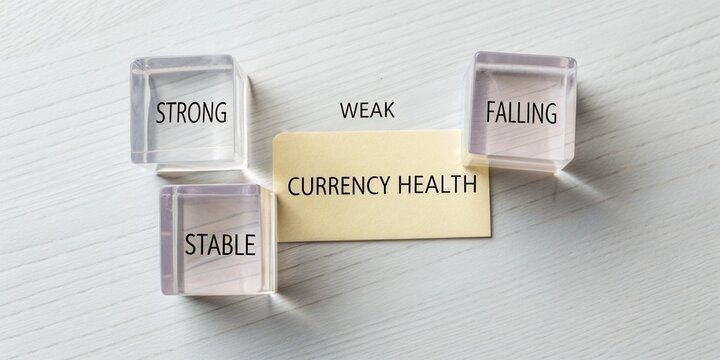 Analysis of Currency Health Indicators Displayed Using Transparent Blocks on a Wood Surface