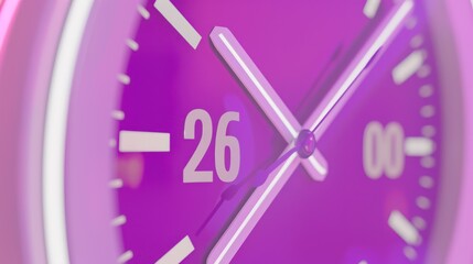 Purple Modern Analog Clock Closeup with Bright Hands and Bold Numbers for Timekeeping or Design
