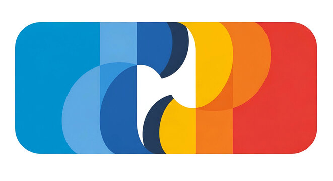 Abstract Colorful Geometric Pattern on White Background with Bright Blue Yellow Red Shades
