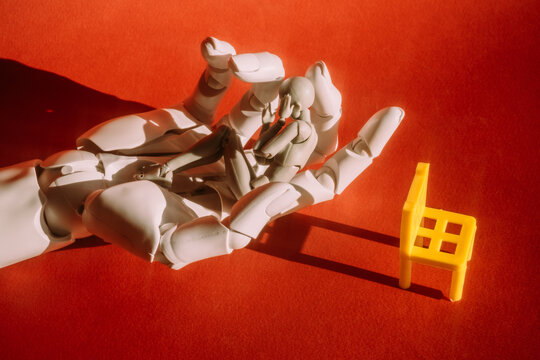 High-tech presentation setup with a red backdrop, showcasing a 3D digital HUD for enhanced interface visualization