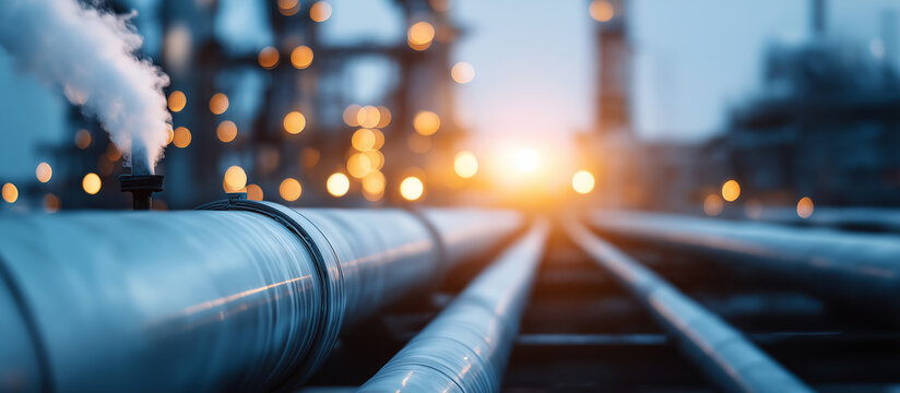 Industrial enterprise with smoking pipes heavily defocused background factory emissions visualization manufacturing environmental impact industrial pollution scene with copy