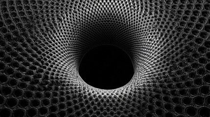 Black hole visualization with swirling distorted reflections and gravitational lensing creating a cosmic, surreal, and dynamic scene representing space, astrophysics, and futuristic digital aesthetics