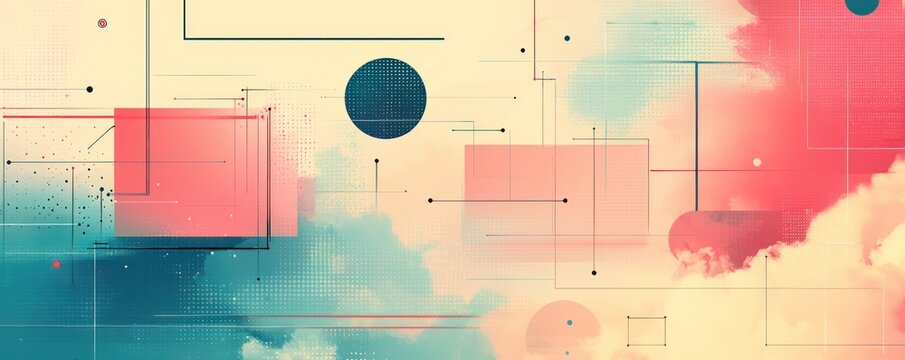 Modern design integrating cloud computing with data transfer and encryption, featuring sleek graphics and geometric shapes for enhanced security visualizations