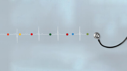 An abstract medical concept featuring colorful dots and a stethoscope. It visually represents health monitoring and diagnosis
