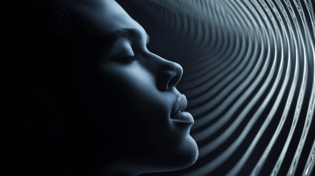 Woman using vr headset with scientific data overlay