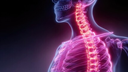 Neon X-ray scan glowing with skeleton outline and bone detail, stylized medical imaging concept in neon for healthcare, diagnostics, or anatomy visuals