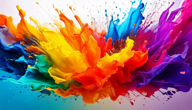 Colourful paint splash, modern art, colors, green, red, yellow, blue, rainbow, acrylic paint, modern art, background, copy space, backdrop, fill, texture, copy space, vivid