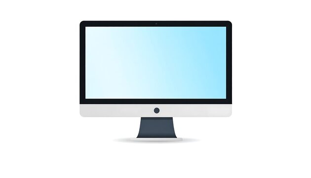 A modern desktop computer with a large, bright screen. It's in an isolated, minimalist style on a white background. The screen shows a light blue gradient