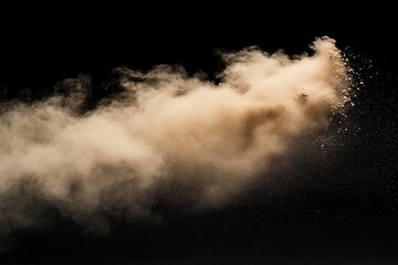 White powder explodes in a dynamic burst against a stark black backdrop, creating a dramatic and abstract cloud effect