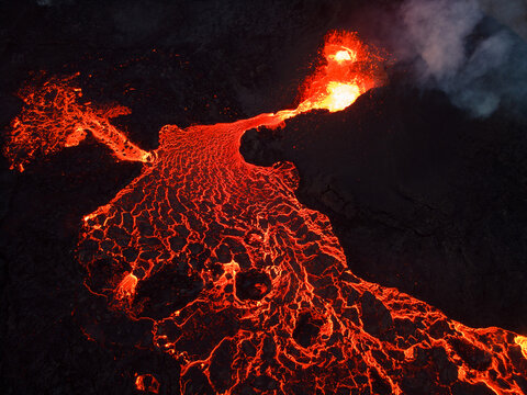 Iceland Volcano Volcanic Eruption with lava at Fagradalsfjall, Reykjanes Peninsula