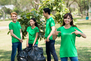 Happy volunteer in the park