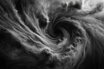swirling vortex of dark clouds creates dramatic and intense , resembling powerful cyclone or hurricane. swirling motion evokes sense of energy and movement