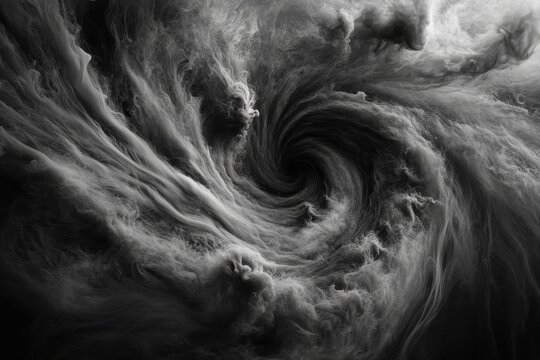 Swirling clouds create a dramatic vortex in a monochrome stormy sky