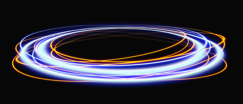 Abstract background. Motion swirl. Glowing circle. Bright spiral. Glow podium. Empty Scene. Space tunnel. Light ellipse. Glint galaxy. Oval stage. Led studio. Lens flare. Glare ring. Show disc.