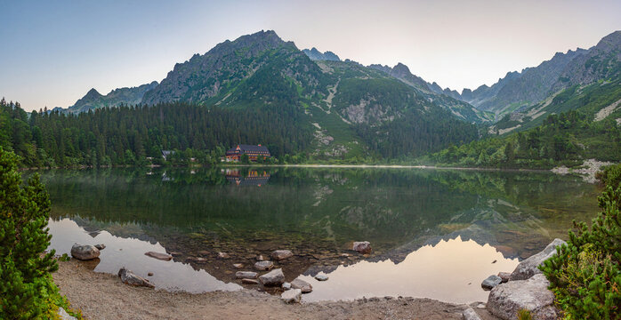Mountain lake (Strbske Pleso) in High Tatras National Park, Slovakia.
