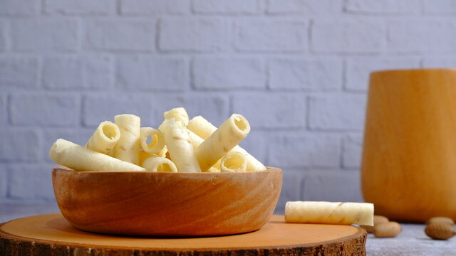 Crispy wafer rolls on a white background.